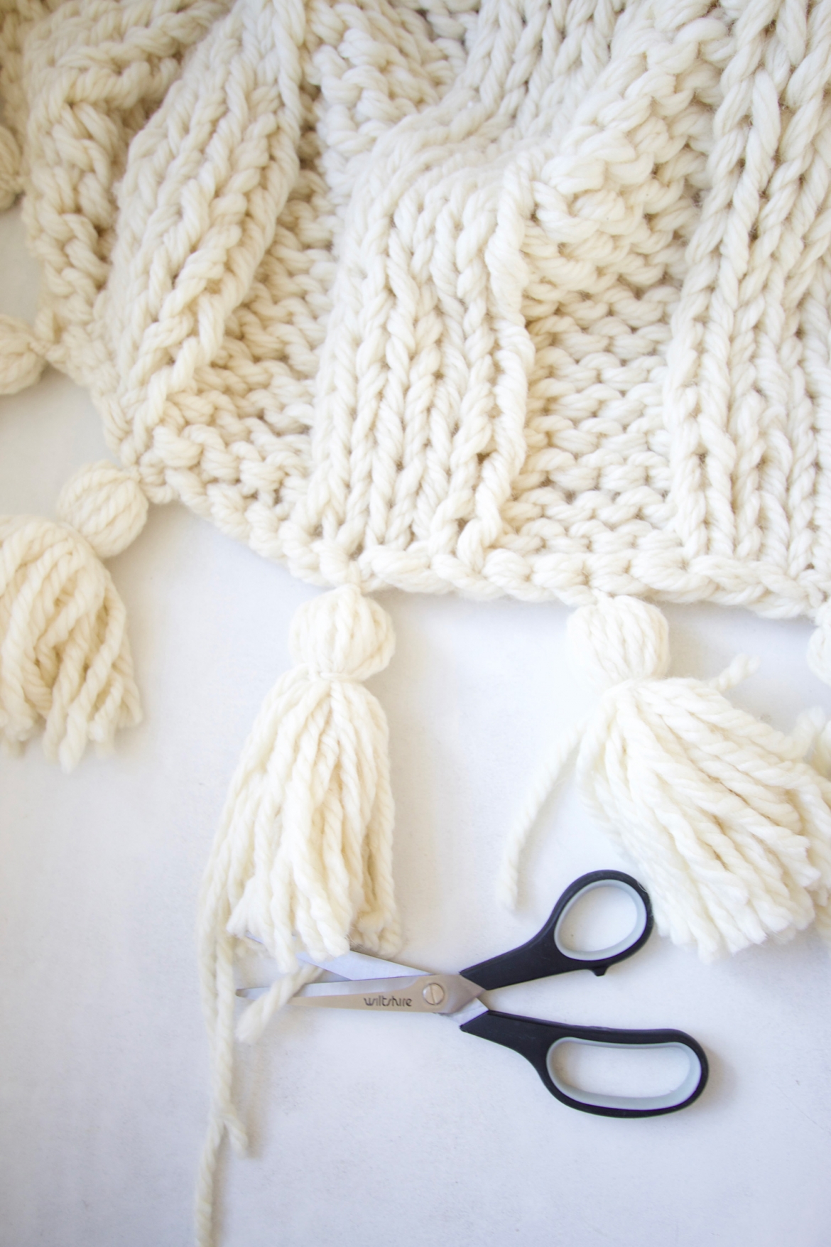 An easy step by step guide and video tutorial for making a diy chunky knit blanket.